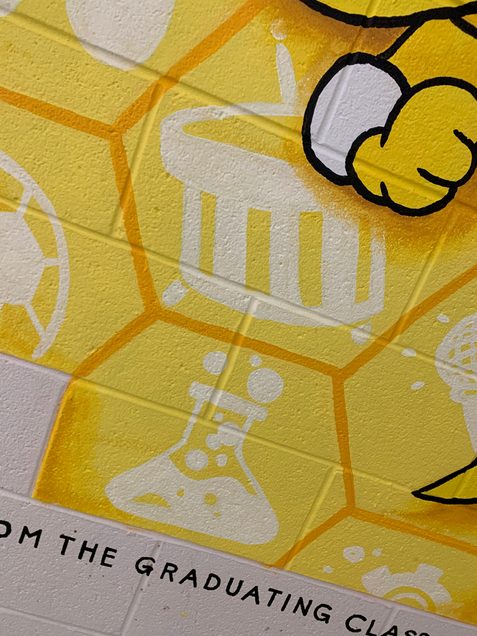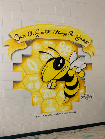 Through the collaboration of ABRM Elite Murals with Project Graduation and RRHS, the Yellow Jacket mural has become a cherished addition to the school's environment. It stands as a lasting tribute to the resilience, diversity, and spirit of the class of 2020, encapsulating their journey and the essence of what it means to be a Yellow Jacket.